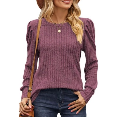 Womens Shirts Business Casual Tops Puff Sleeve Crew Neck Sweaters Fall Clothes Blouses