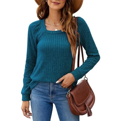 Women's Fall Sweaters Lightweight Square Neck Pullover Casual Long Sleeve Tunic Tops