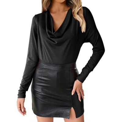 Womens Summer Tops Trendy 2024 Fall Cowl Neck Shirts Long Sleeve Teacher Clothes Office Business Dressy Casual