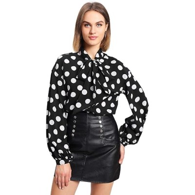 Womens Dressy Chiffon Blouse Business Work Casual Tie Neck Shirt Tops