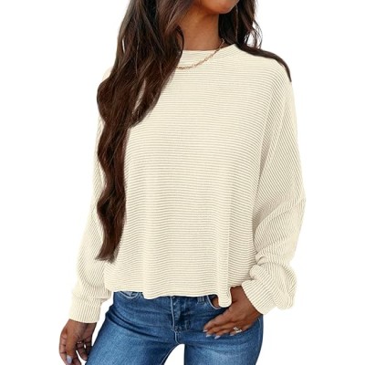 Casual Long Sleeve Shirts for Women Crewneck Ribbed Kint Soft Tops 2024 Fall Fashion Sweaters