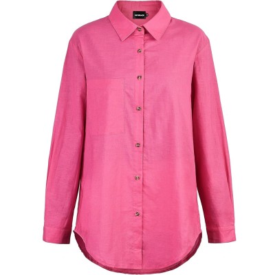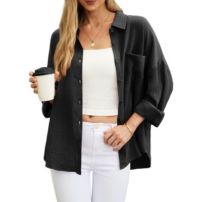 Women‘s Shirts Linen Button Down Shirt Casual Long Loose Blouse Cotton Top with Front Pocket