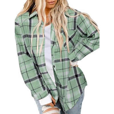 Womens Casual Flannel Plaid Shirts Long Sleeve Button Down Shirts Fashion Blouse Tops with Pocket