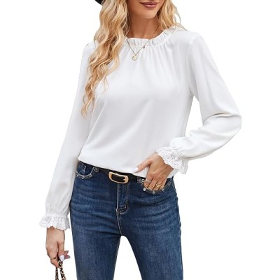 Long Sleeve Blouses for Women Dressy Casual Tops Frill Neck Shirt Business Office Outfits