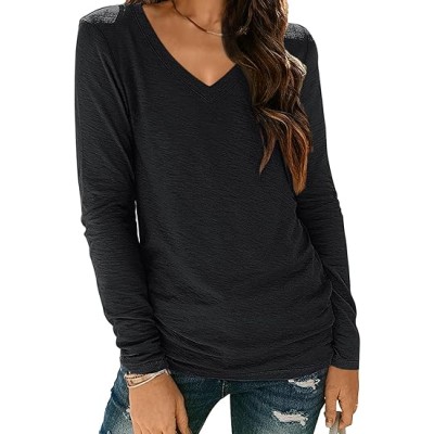 Womens Long Sleeve Shirts V Neck Casual Tops Loose Dressy Basic Fall Fashion Trendy Outfits Winter Clothes 2024