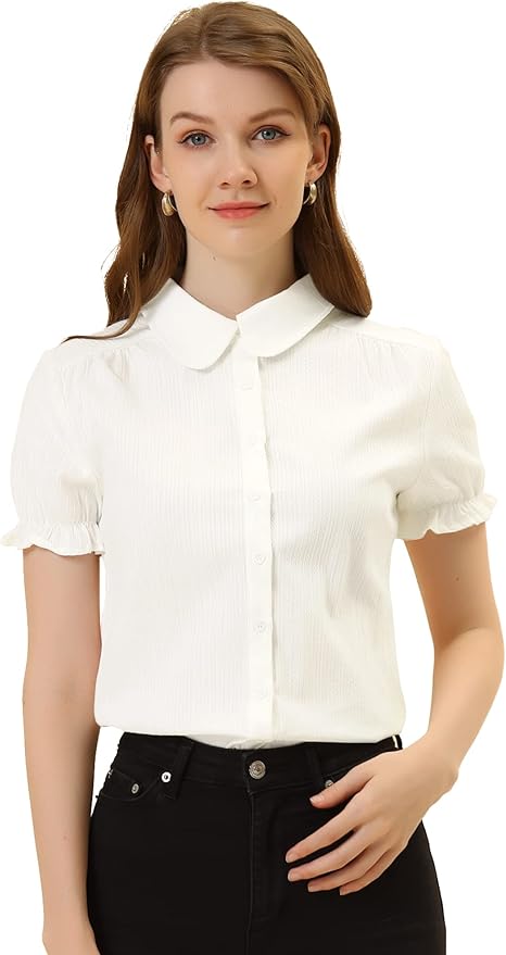 Women's Short Sleeve Button-Up Peter Pan Collar Blouse