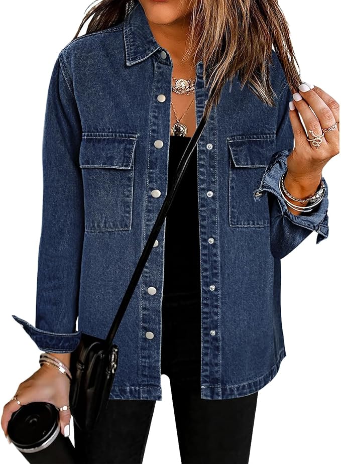 2025 Spring Jean Jackets for Women Fashion Oversized Button Down Denim Jacket Western Shacket Jacket with Pockets