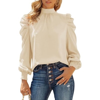 Womens 2024 Long Sleeve High Neck Puff Long Sleeve Casual Loose Shirts Tops and Blouses