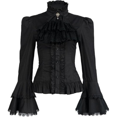 Blouse Womens Gothic Pirate Shirt Vintage Long Sleeve Lotus Ruffle Tops