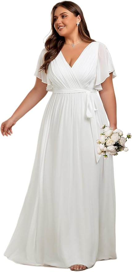 Women's Plus Size A-Line Deep V-Neck Elastic Sash Waist Floor Length Formal Bridesmaid Dress