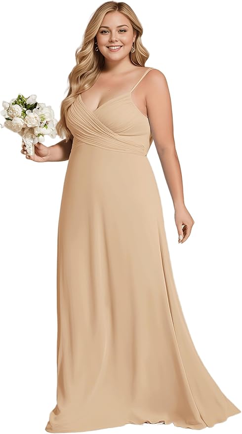 Women's Summer Chiffon Pleated Plus Size Bridesmaid Dresses Sleeveless Formal Gown with Spaghetti Straps