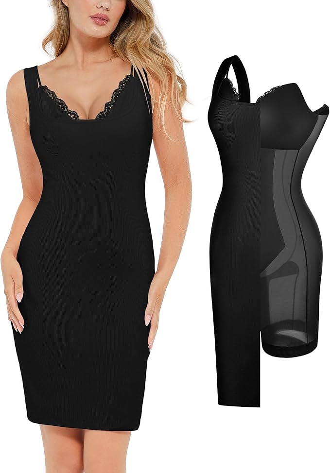 Cocktail Dresses for Women - Summer Lace Layered Bra Modal Midi Shapewear Dress Party Outfits
