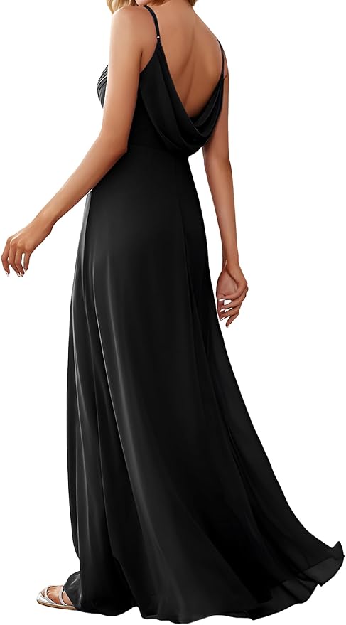 Women's Sexy Spaghetti Straps Cowl Back Empire Waist A Line Pleated Chiffon Bridesmaid Dress 80026-PH
