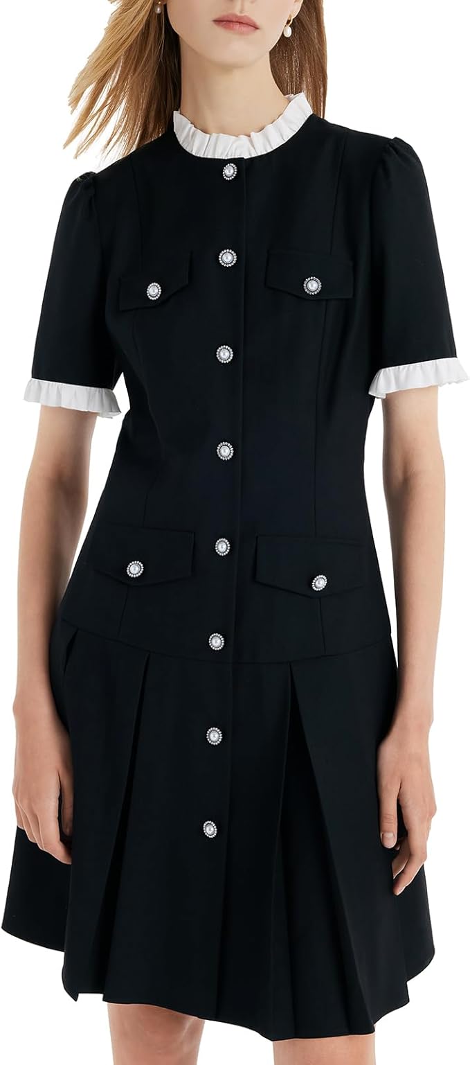 Womens Dresses Casual A Line Mini Bussiness Work Summer Trendy Dresses for Women with Ruffles and Pearl Buttons