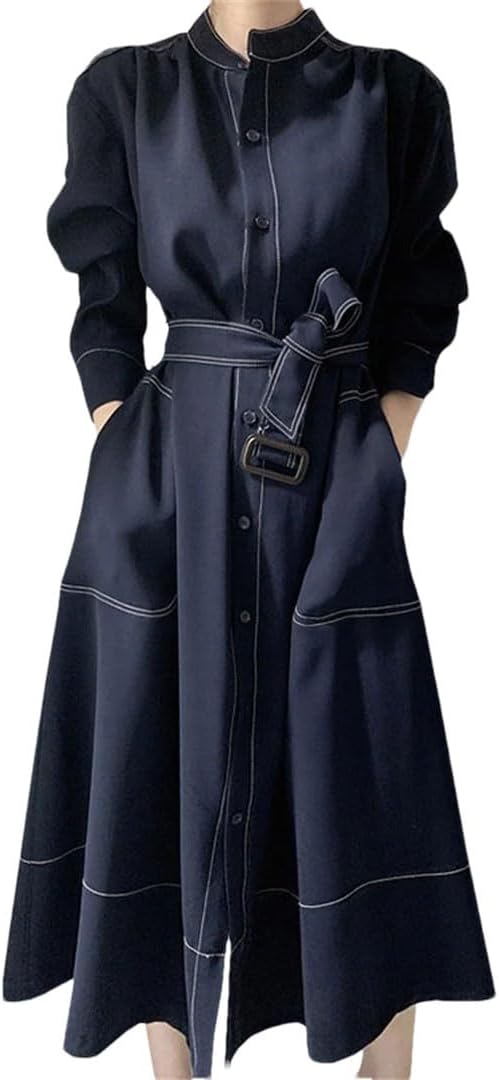Women French Mid Length Temperament with Belt Waist Cinching Design Feeling Long Dress