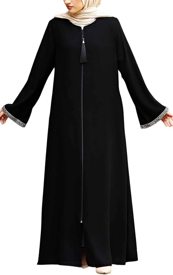 Women's Stone Sleeves Abaya Long Sleeve Floor Length Zipper Floor Length Turkey Islamic Fashion
