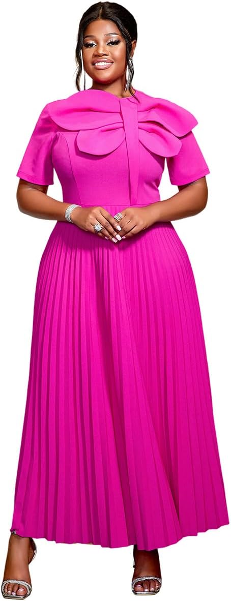 Casual Church Dresses for Women 2025 Summer Pleated Short Sleeve Round Neck Dragonfly Spring Maxi Dress
